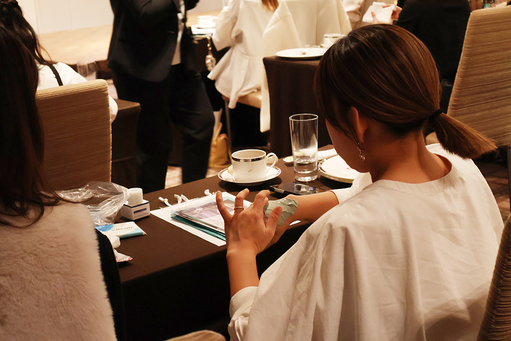 BWUPセミナーでは弊社の人気アイテムのエモリエントパックを手の甲で体験していただき