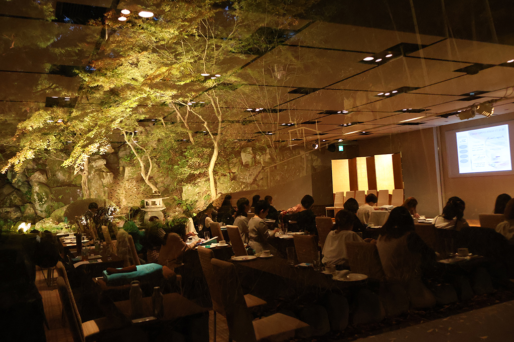 セミナー会場は、紅葉が徐々に色づき始めた日本庭園が見えるガーデンルーム。