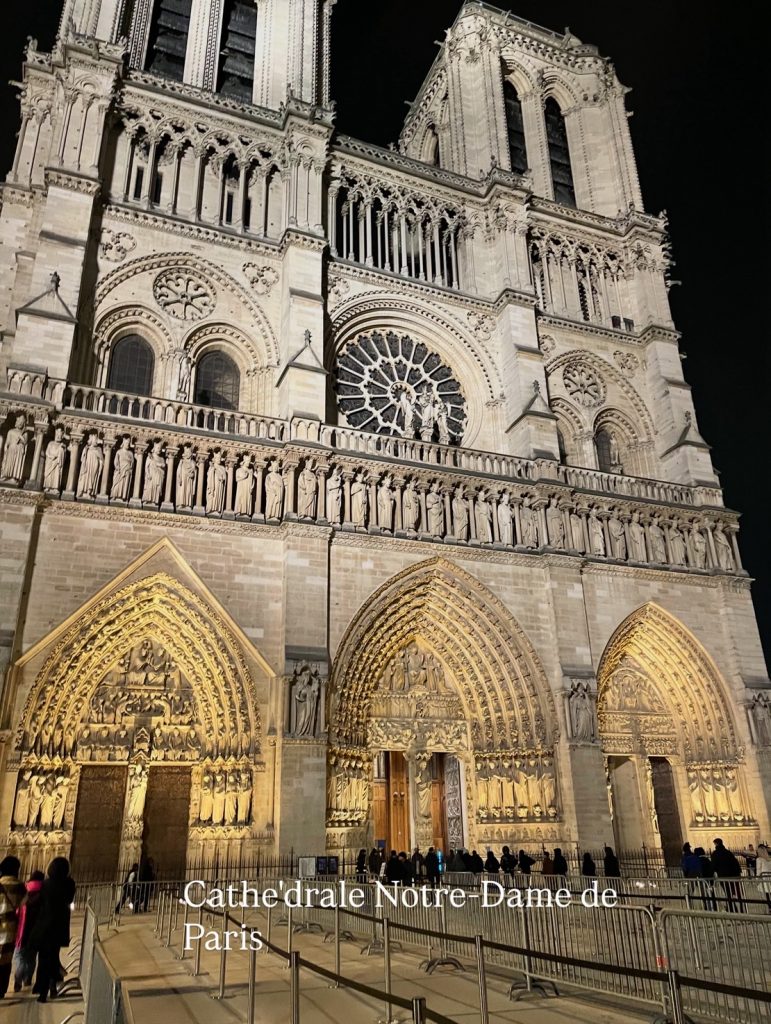 一息ついてから夜のパリへと ノートルダム大聖堂に向かいました。刺すような寒さの中 絢爛たる壮大でかつ凛とした美しい大聖堂、ノートルダムとは我らの貴婦人という意味だそうです。まさにその通りの風格のある教会です。