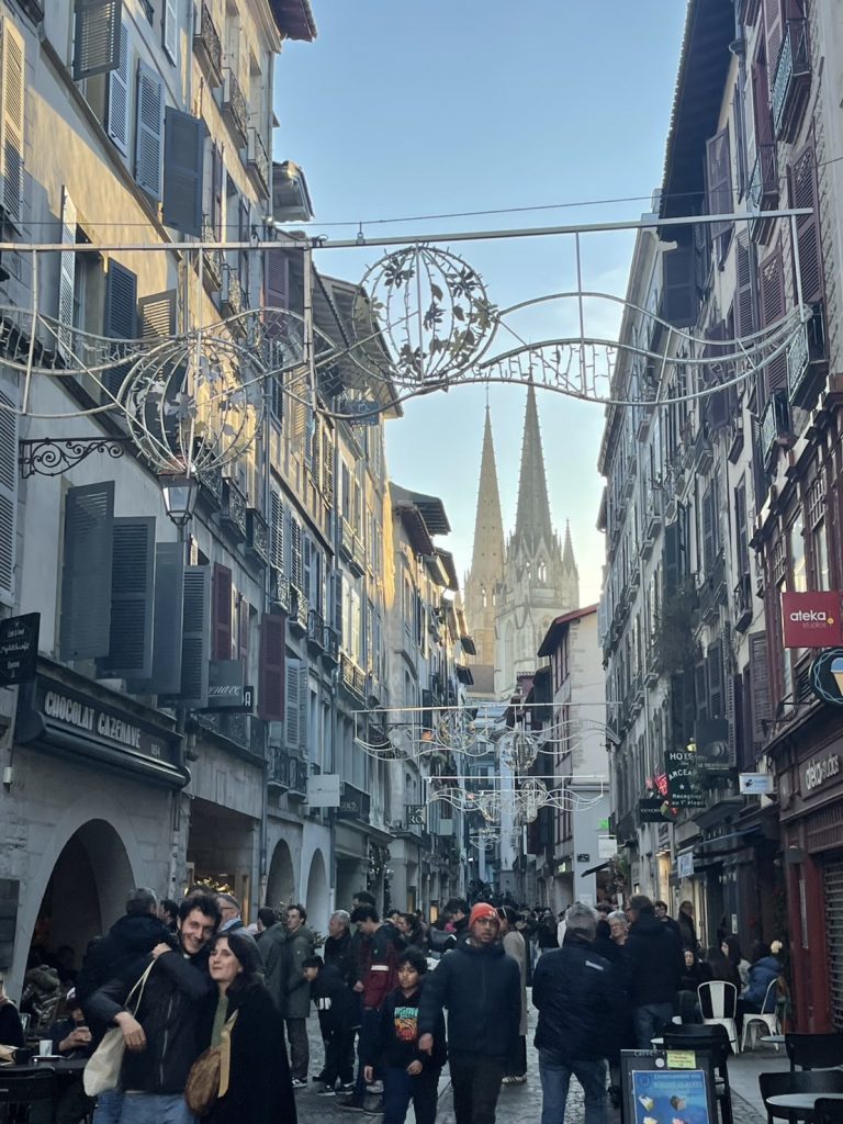バイヨンヌの旧市街地の中心に二色の塔が聳え立つユネスコの世界遺産に認定されたサントマリー大聖堂があり ステンドグラスからの光と祈りのキャンドルの明かりがロマンチックを通り越した美しさと不思議な安堵感を与えてくれます。